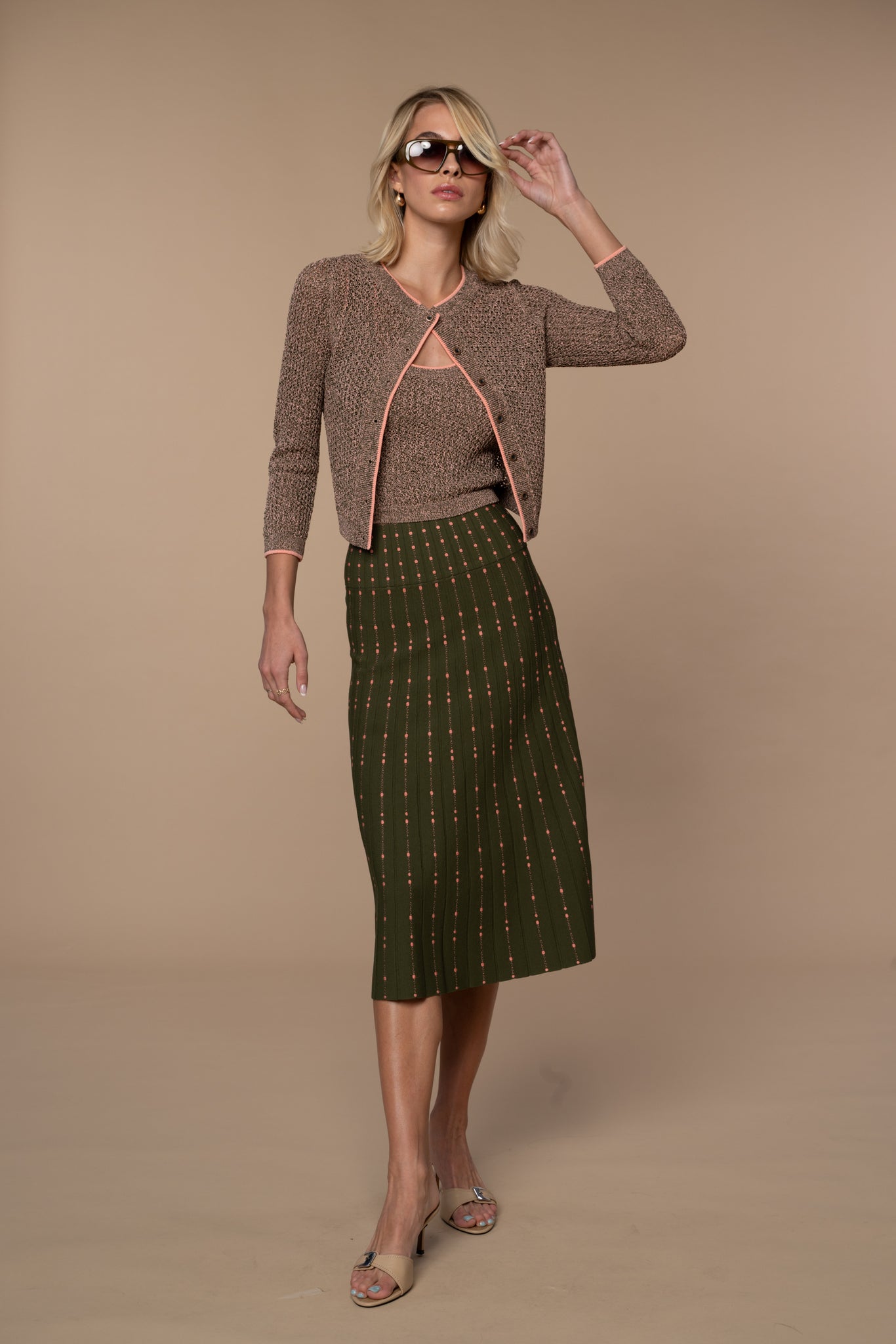 The Jane Marled Tank Top in Olive and Peach transitions seamlessly across seasons. Its textured marled fabric adds visual interest to any outfit, whether worn alone or layered with the Marylin Cardigan. A refined essential that earns its place in your wardrobe.